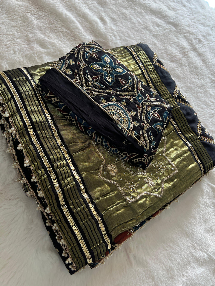 ✨ ~ Dharini – Zardozi Ajrakh Saree ~ ✨