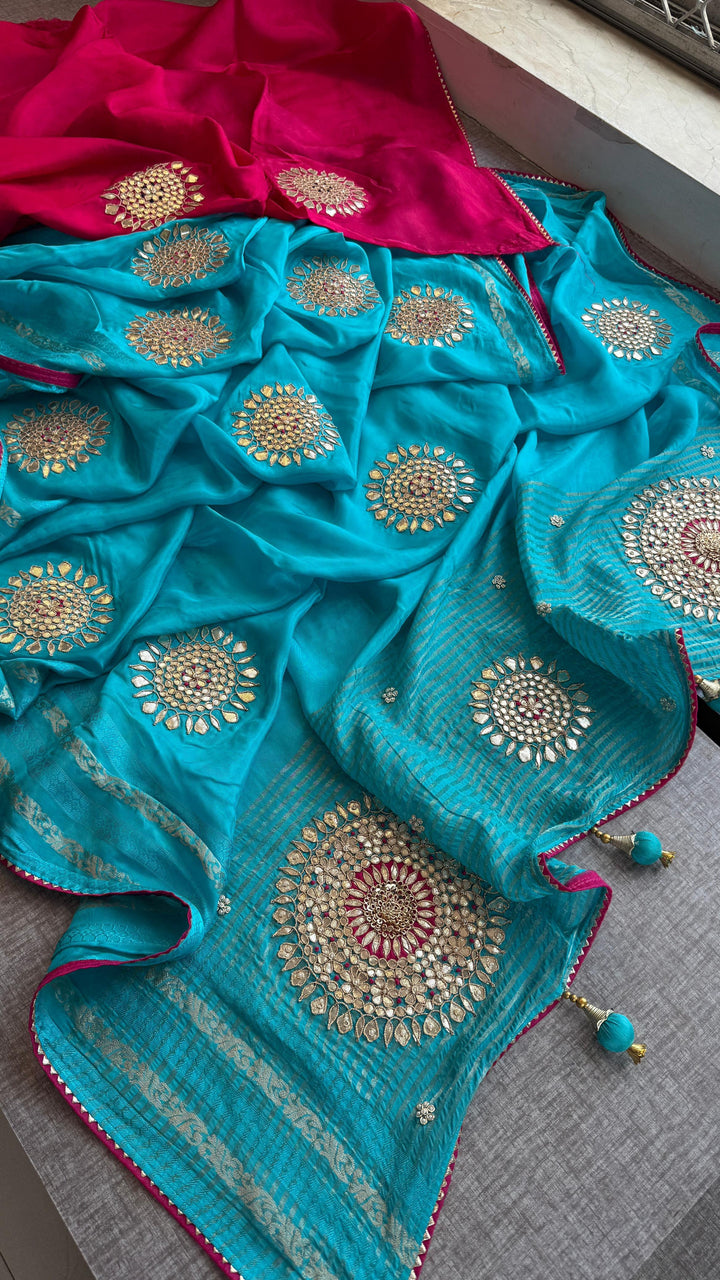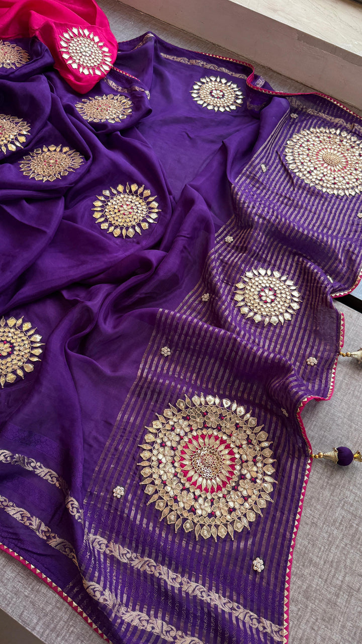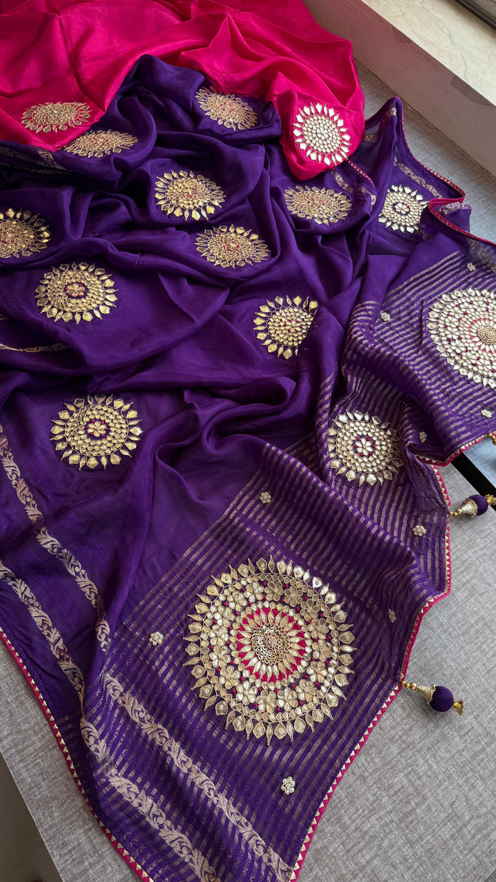 ✨ Gotapatti Munga Silk Butta Saree – Heritage in Every Thread ✨A timeless treasure woven with grace and adorned with delicate hand embroidery—perfect for celebrations steeped in elegance. 🌟 Fabric:...