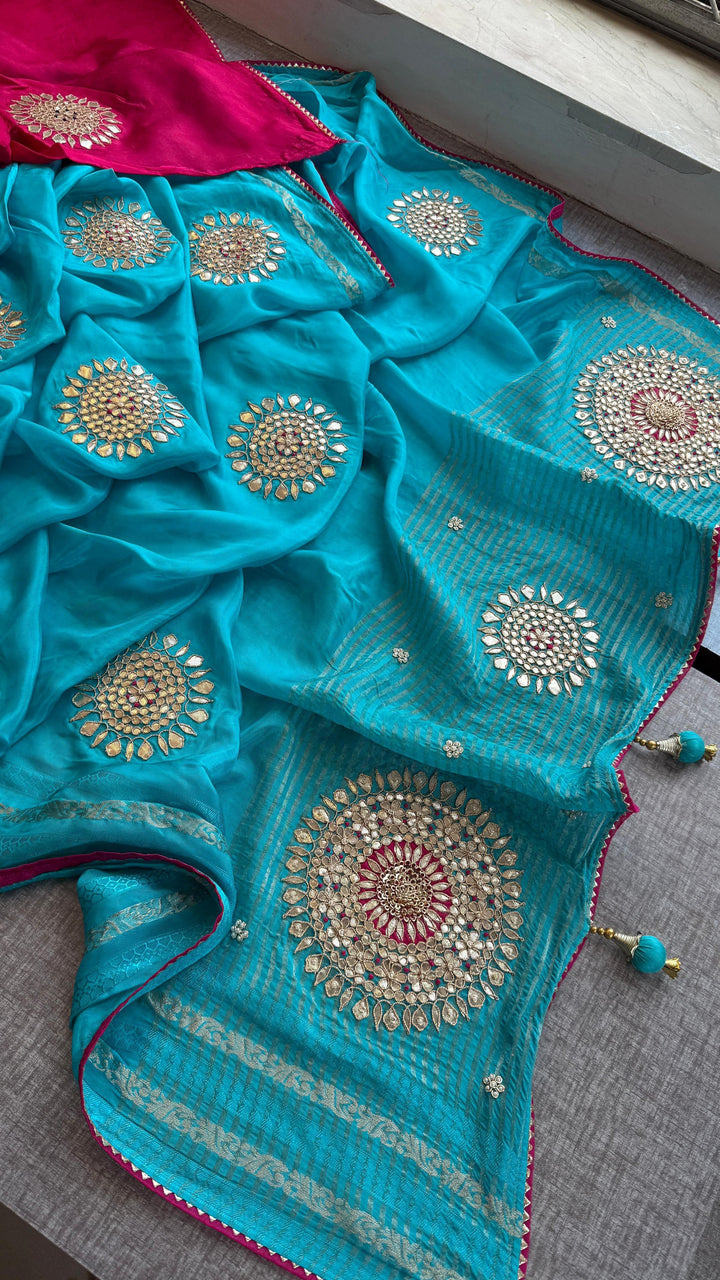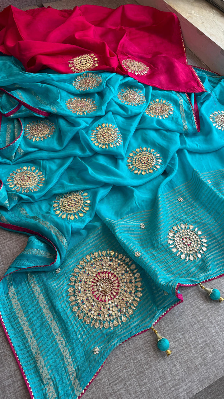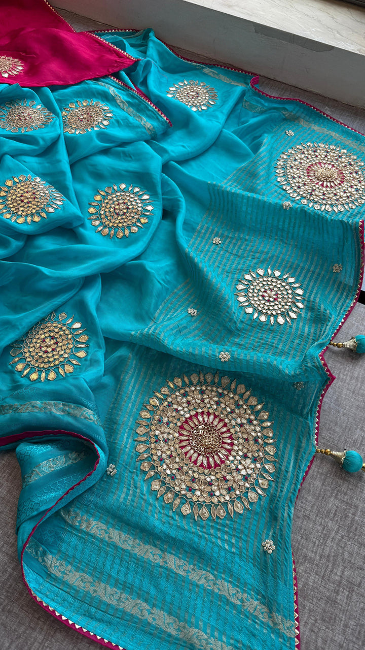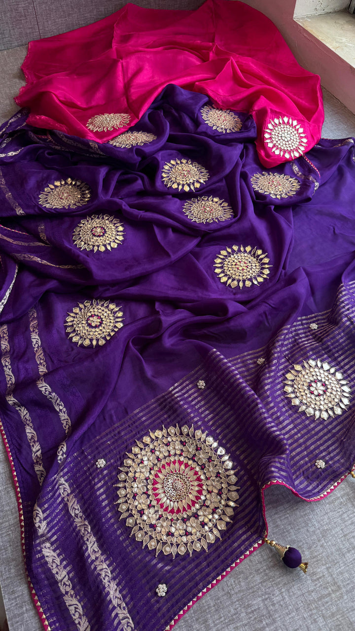 ✨ Gotapatti Munga Silk Butta Saree – Heritage in Every Thread ✨A timeless treasure woven with grace and adorned with delicate hand embroidery—perfect for celebrations steeped in elegance. 🌟 Fabric:...