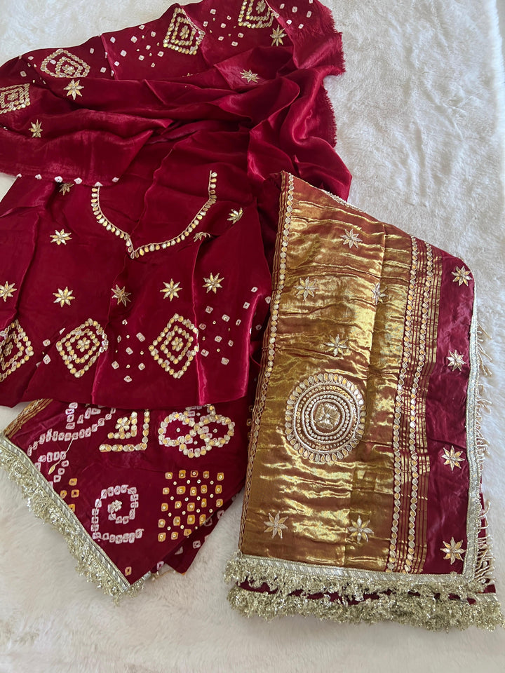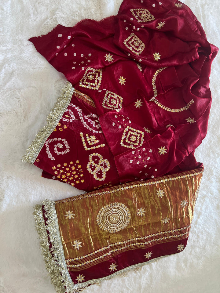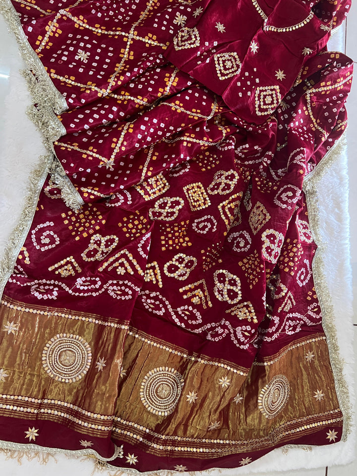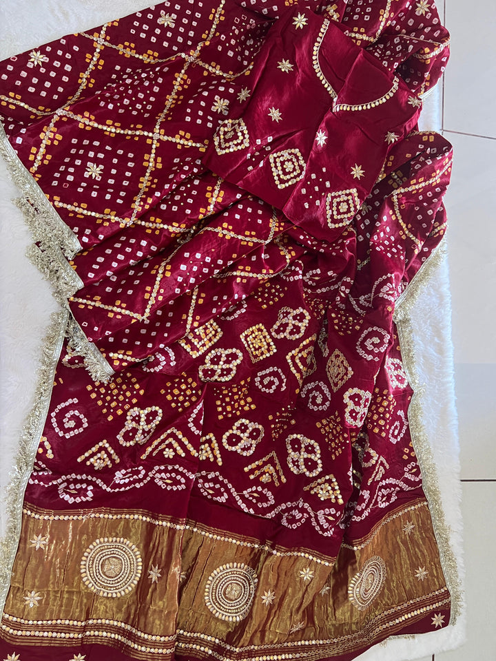 Product is Ready to be Dispatched. Order Now! ✨ Mehroon Bandhani Elegance ✨ Drape yourself in timeless charm with this Deep Mehroon Pure Modal Silk Bandhej Saree, adorned with exquisite Gota...