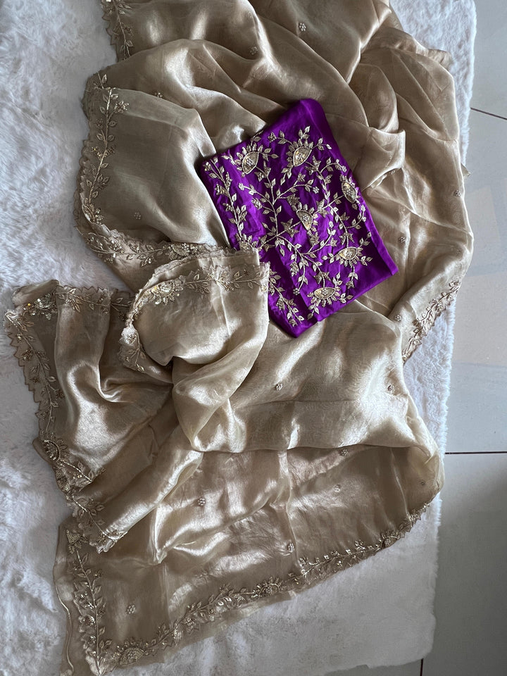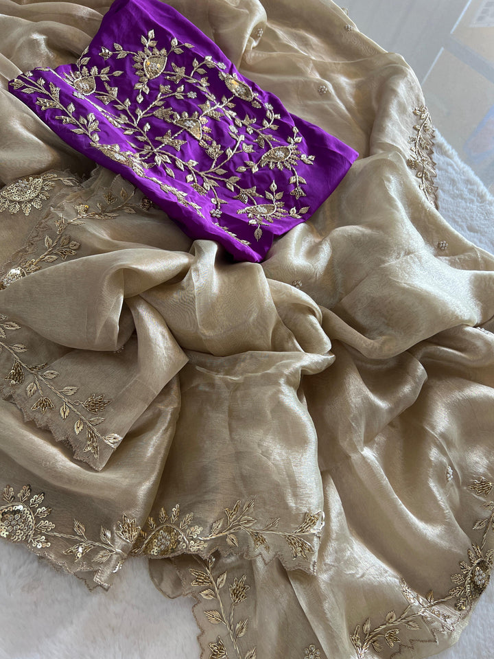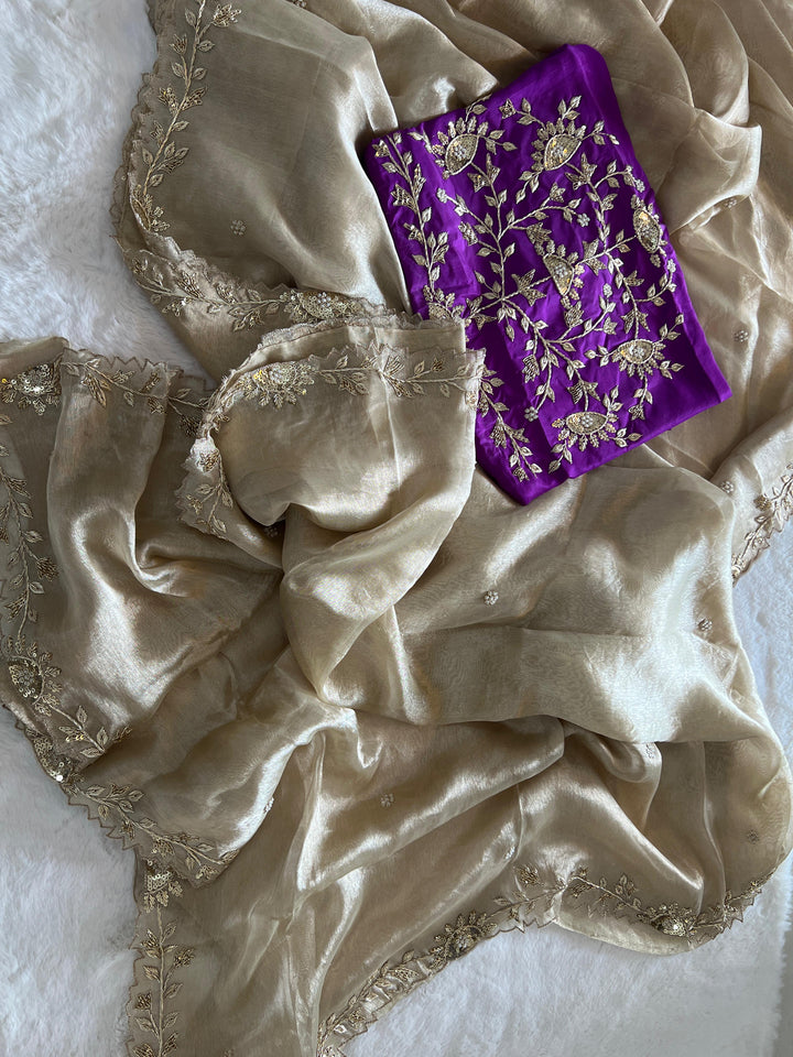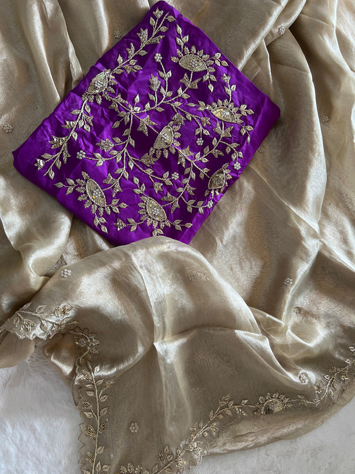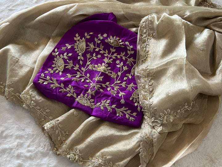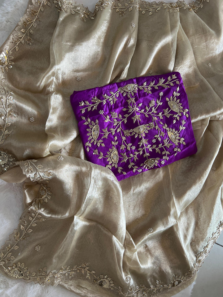 ✨ ROOP – Tissue Zardozi Elegant Saree with Contrast Blouse ✨