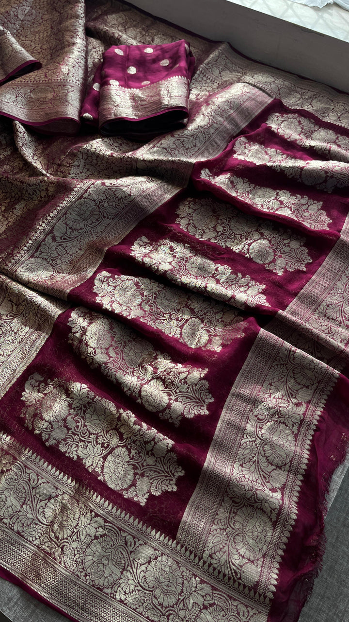 🧵 Weaving: Classic Banarasi Weave – intricately woven motifs with a subtle sheen