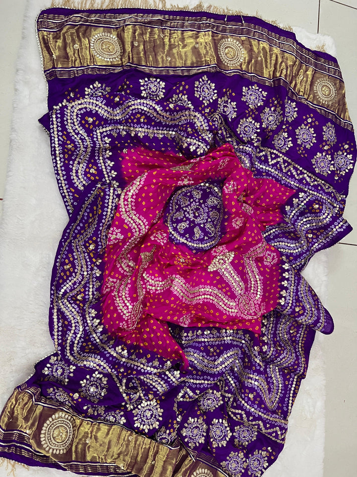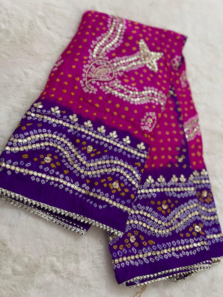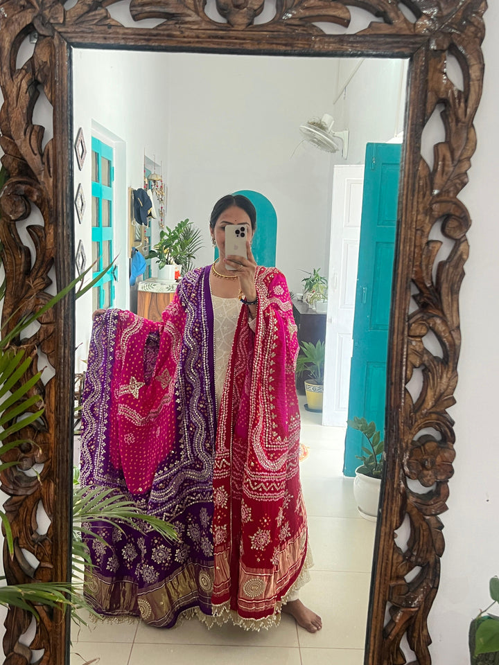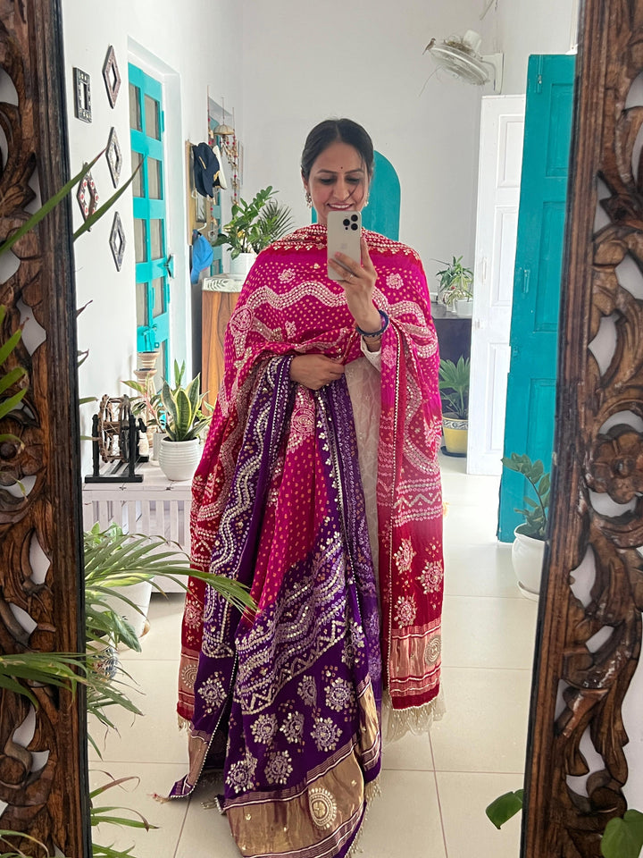 ❣ Gotapatti Bandhej Zardozi Dupatta – Rani Red, Pink & Purple Hues ❣