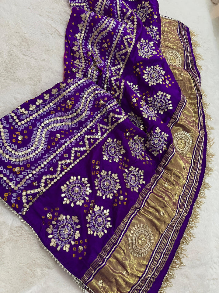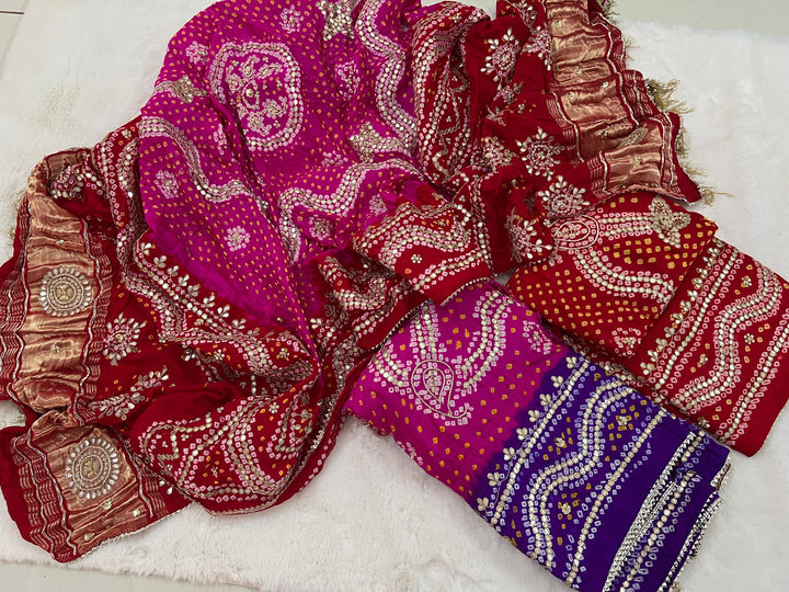 ❣ Gotapatti Bandhej Zardozi Dupatta – Rani Red, Pink & Purple Hues ❣A regal statement piece drenched in tradition and hand-embellished luxury—perfect for weddings, shagan, or festive styling. 🌟 Fabric:...