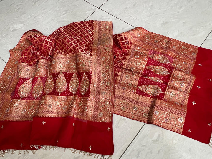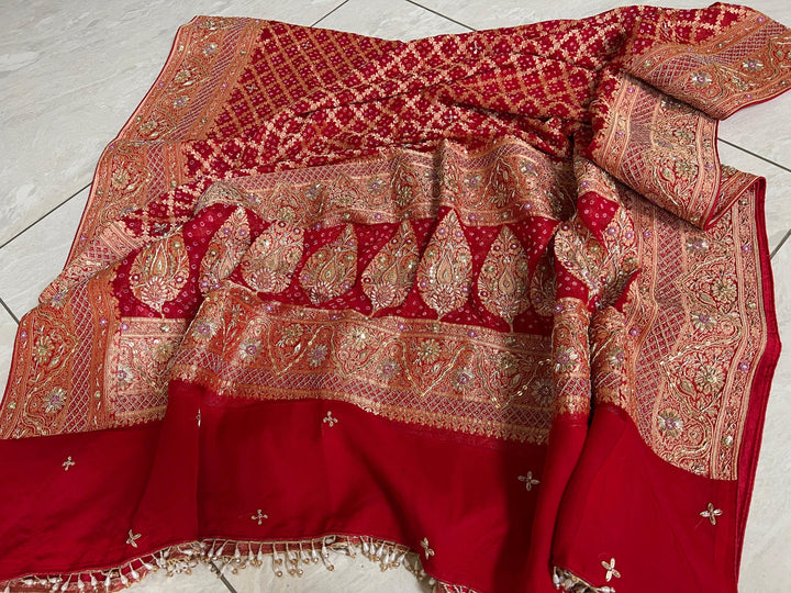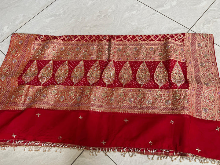 Product available 4-5 weeks in advance. Pre-Order Now! ❤️ SURKH LAAL – Shagan Odhna of Traditions & Grace ❤️An ode to timeless rituals, crafted in the deepest hue of love...