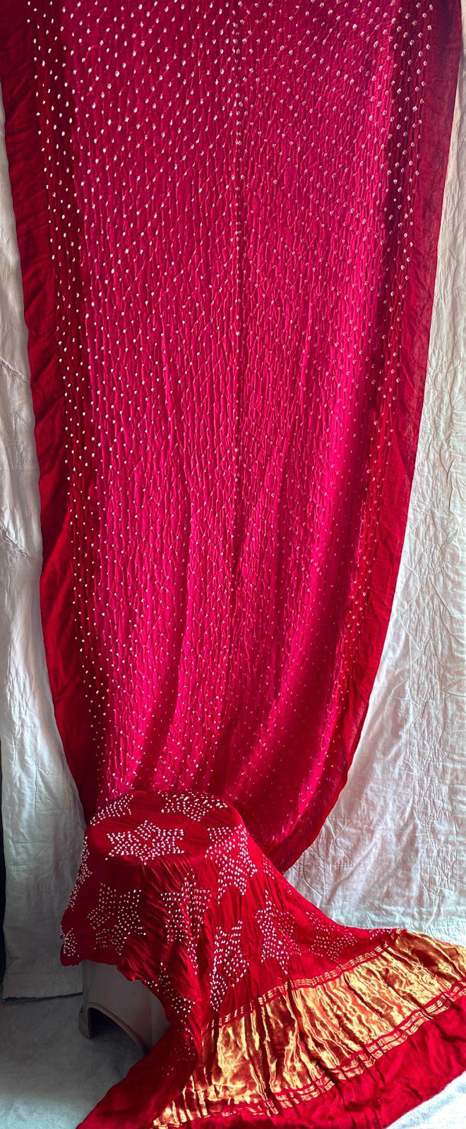 Celebrate tradition in timeless elegance with this rich handwoven Bandhani drape—crafted for festive moments and cultural charm.