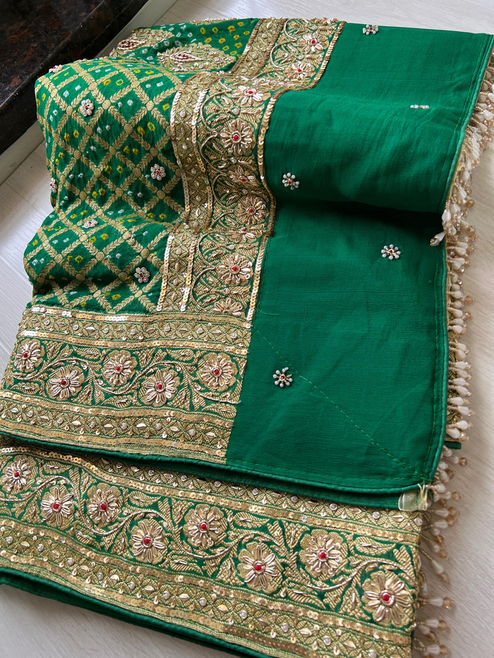 Product Out of Stock currently! π· Mehndi Shagan Odhna β A Celebration in Every Thread π·A vibrant symbol of tradition, crafted to complete your festive ensemble with grace. π Fabric:...