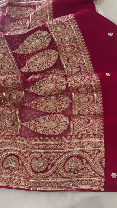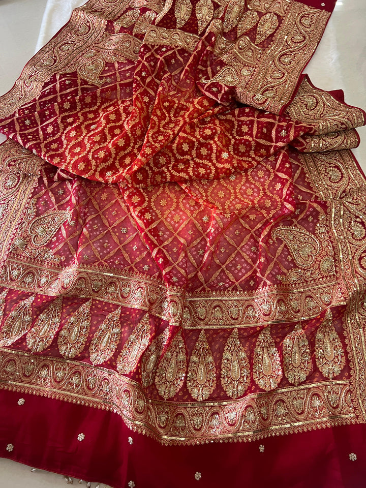 An ode to timeless celebration and handcrafted splendour✨ Our Shaadi Shagan Odhna in regal Red & Orange hues beautifully captures the grandeur of Indian traditions. Crafted in Pure Georgette Neemzari, this exquisite dupatta is intricately embellished with fine Zardozi, Marodi & Dabka handwork, each stitch narrating a story of heritage and artistry.