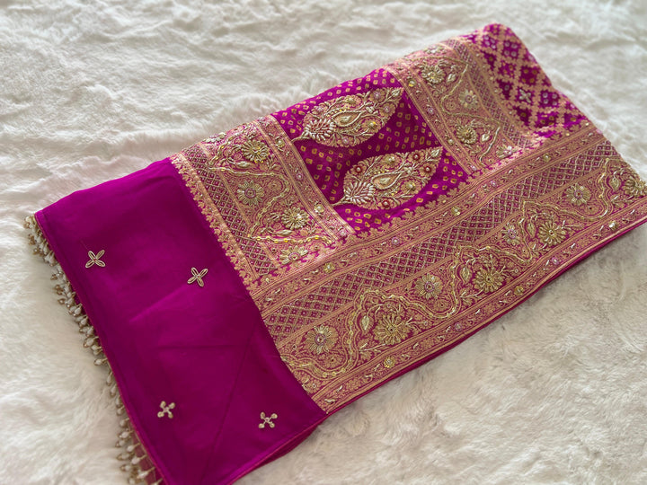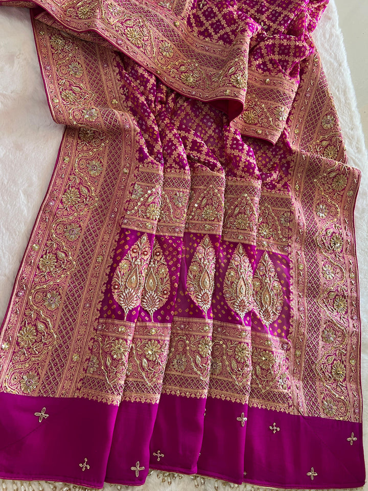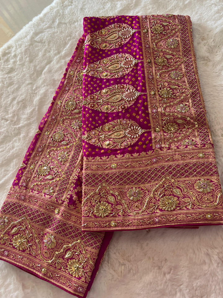 Product is Ready to be Dispatched. Shipping Time 5-7 days. 🌷~ Shagan Odhna ~🌷A symbol of grace, tradition, and festive warmth. ✨ Color: Majestic Magenta Pink🌸 Fabric: Pure Georgette Neemzari🌟...
