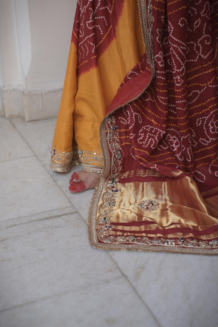 Product available upto 4-5 weeks in advance. Pre-Order Now! ๐ผ ~ Bandhani Peela Saree ~ ๐ผ A radiant heirloom for your festive wardrobe โจ. This Pure Gajji Silk Handwoven Rai...