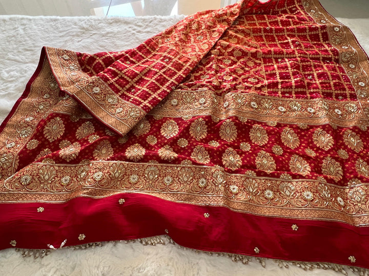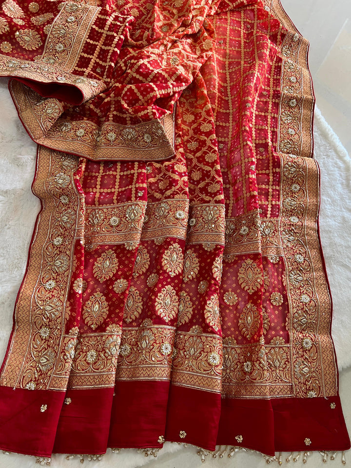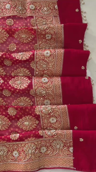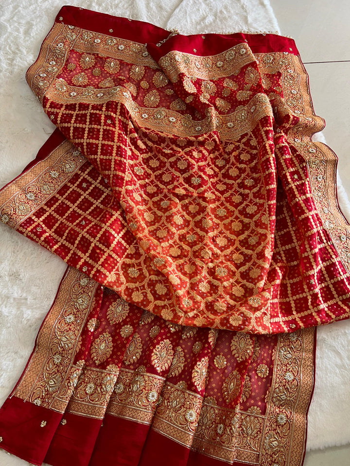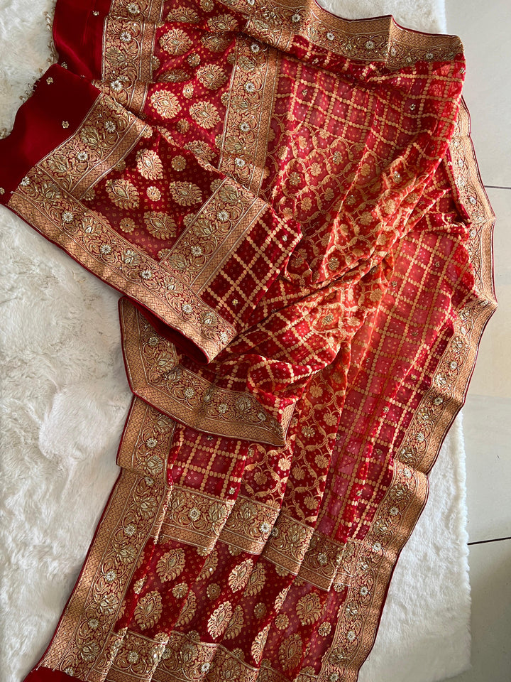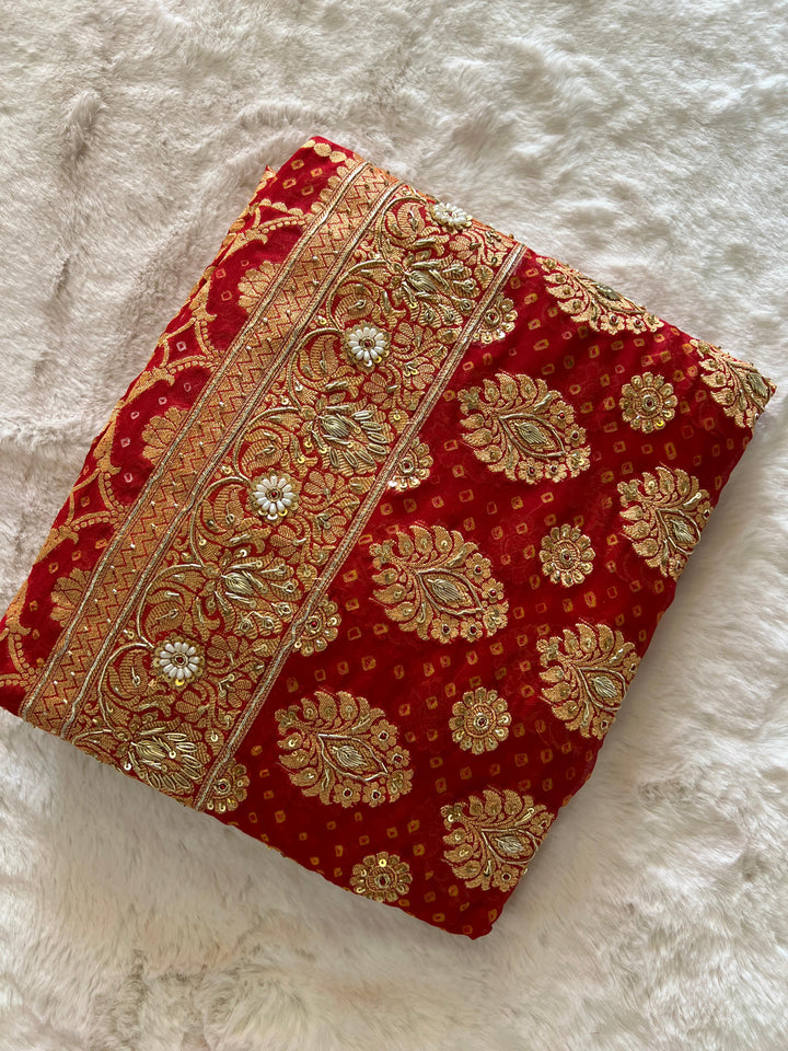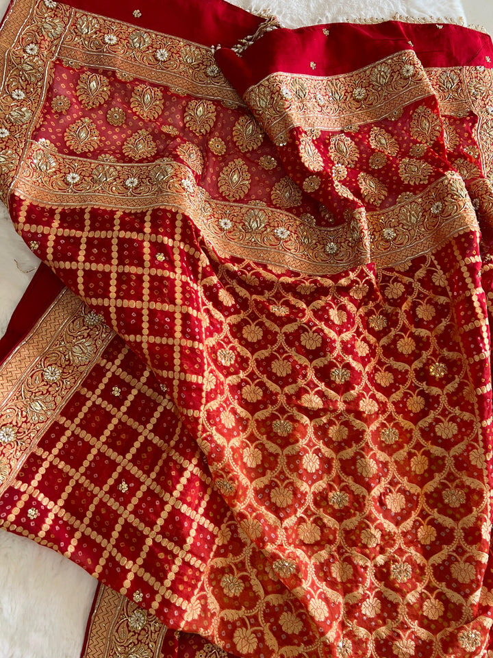 A radiant ode to rituals, this odhna captures the warmth of tradition with the brilliance of hand-embellished details.