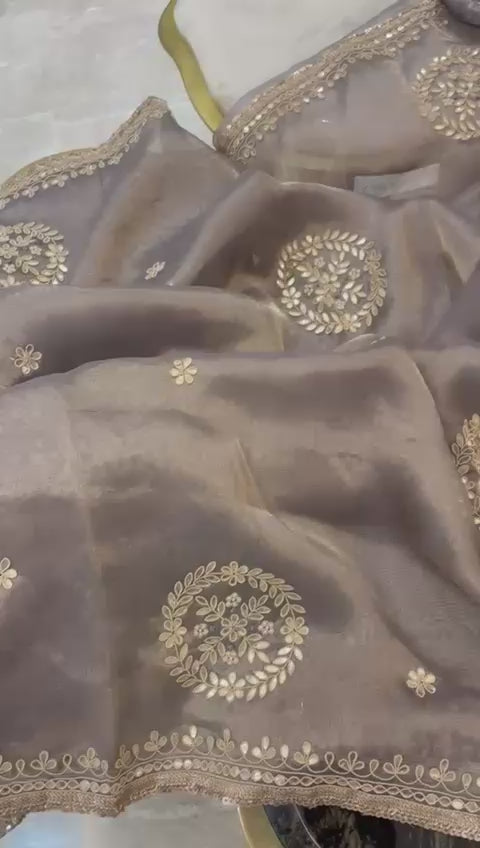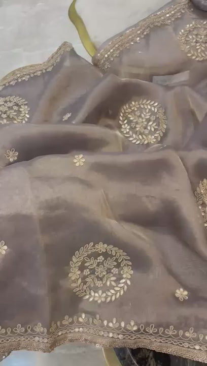 ๐ Maharani Gotapatti Grey Tissue Saree โจ๐ซ