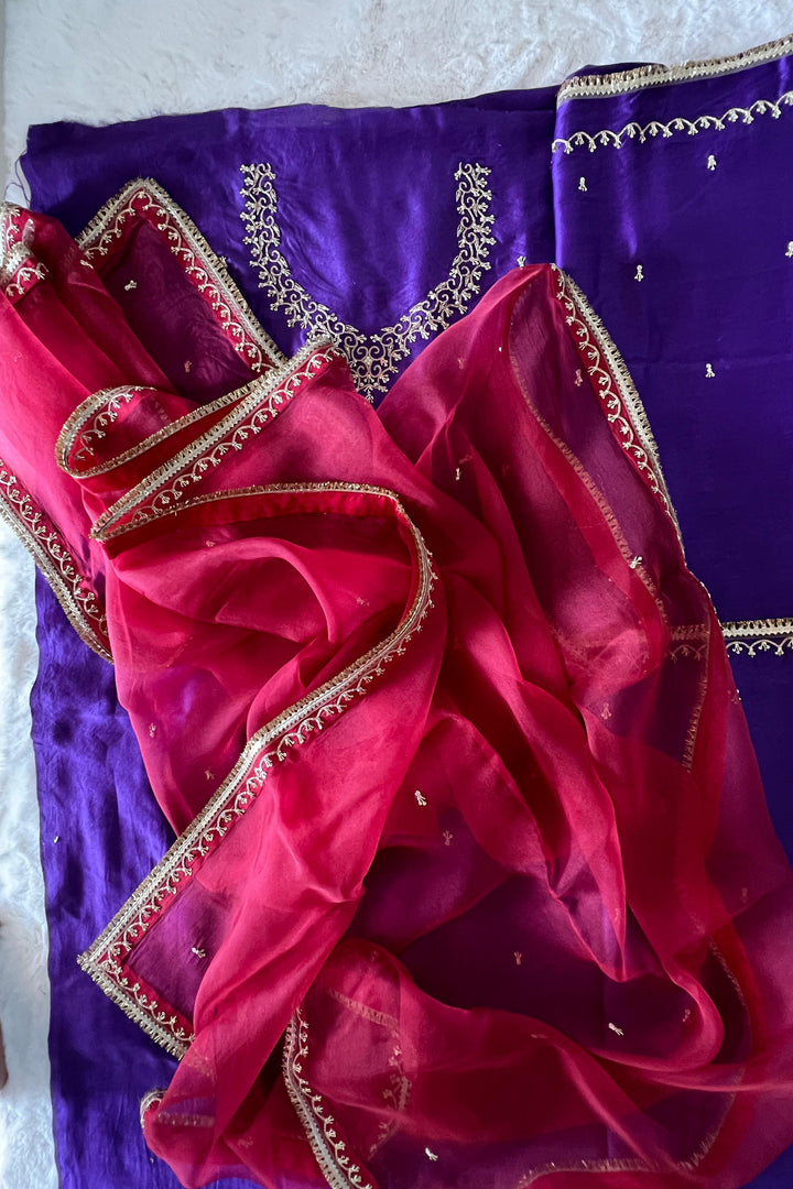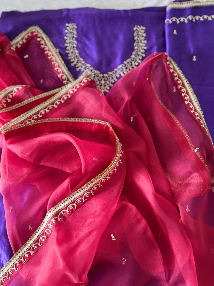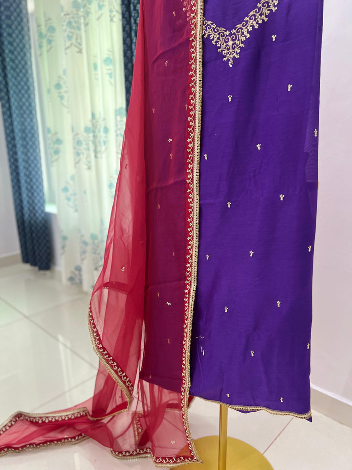 π¨ Colour: Deep Purple suit with Mehroon dupatta