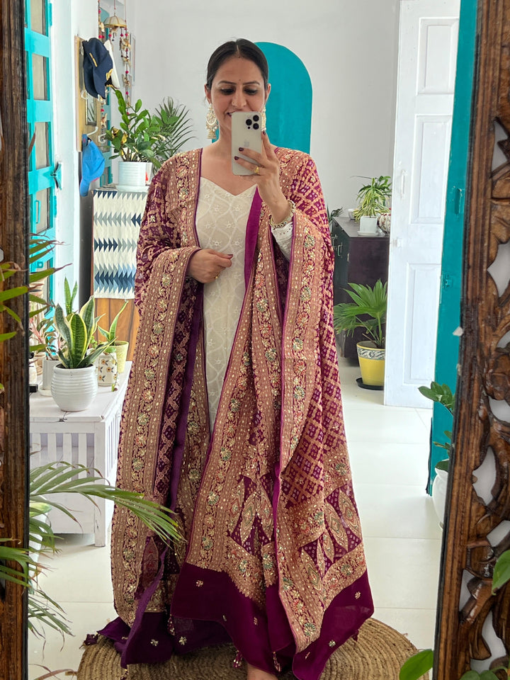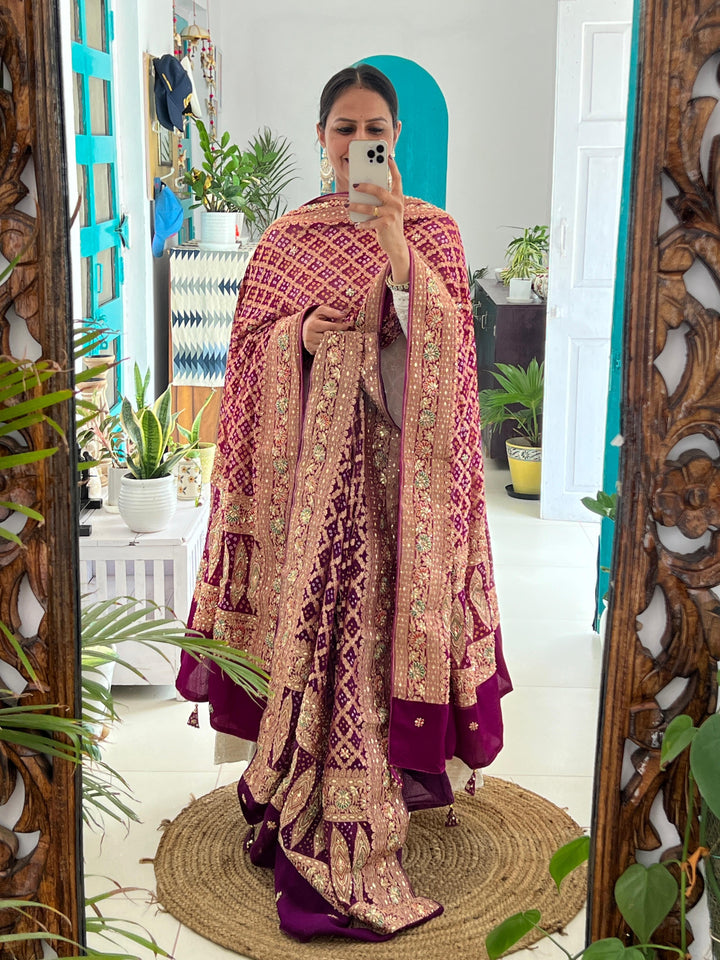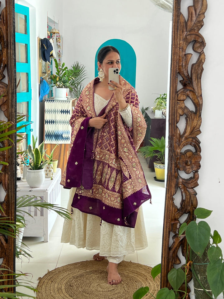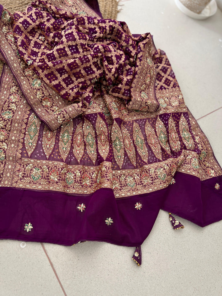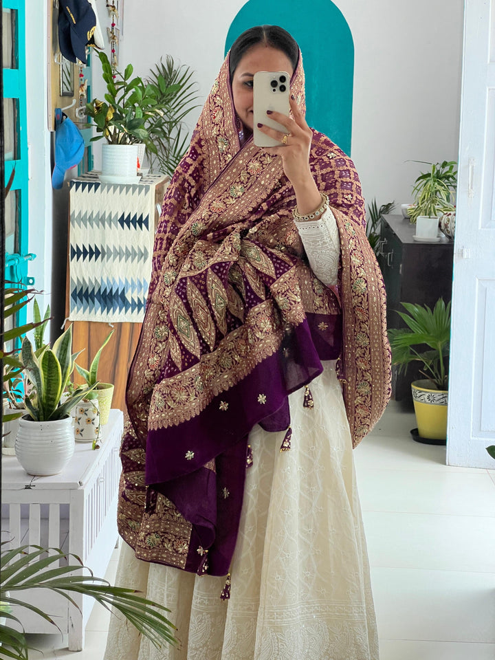 Indulge in the richness of tradition with our Pure Georgette Neemzari Dupatta, a true masterpiece from our Bridal Edit. Handcrafted with fine Zardozi, Marodi, Resham & Dabka work, this odhna glows with heritage finesse and is perfect for your shaadi shagan moments. The dark-toned variant adds depth, elegance, and unmatched grandeur to your look.
