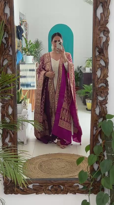 Drape this exquisite piece over a deep-hued velvet lehenga or an intricately embroidered silk suit. Add a statement nath, soft curls, and bridal glow for the perfect royal ensemble. ๐ŸŒนโœจ