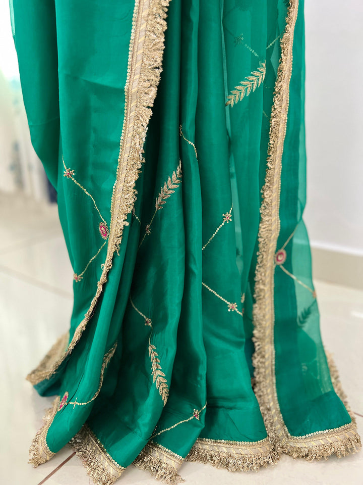 πŸ’š ~ PANNA ~ Zardozi Jaal Saree πŸ’š