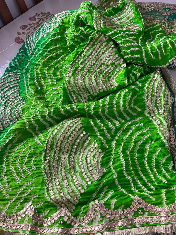 π Rama Green Bandhej Lehenga Set β A Celebration of Colour & Craft πA vibrant symphony of Rama & Parrot Green shades brought together with the elegance of Bandhej and...
