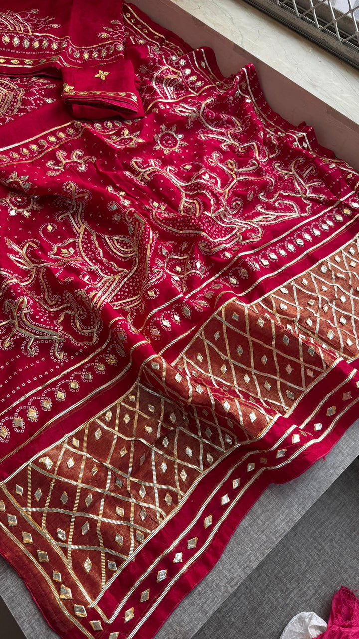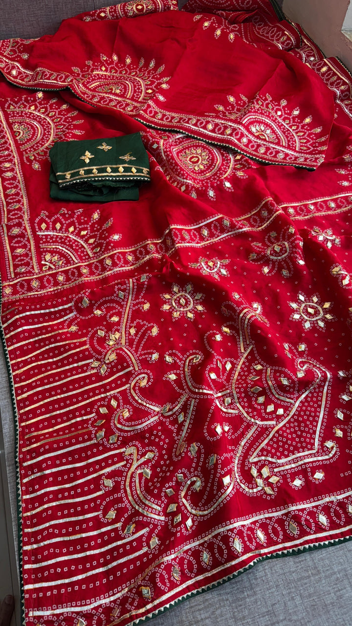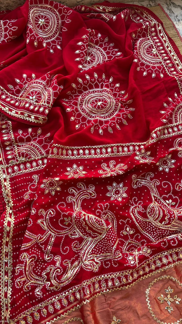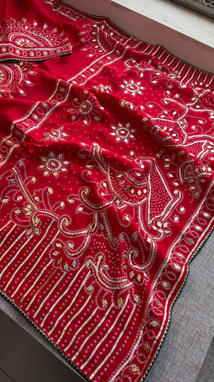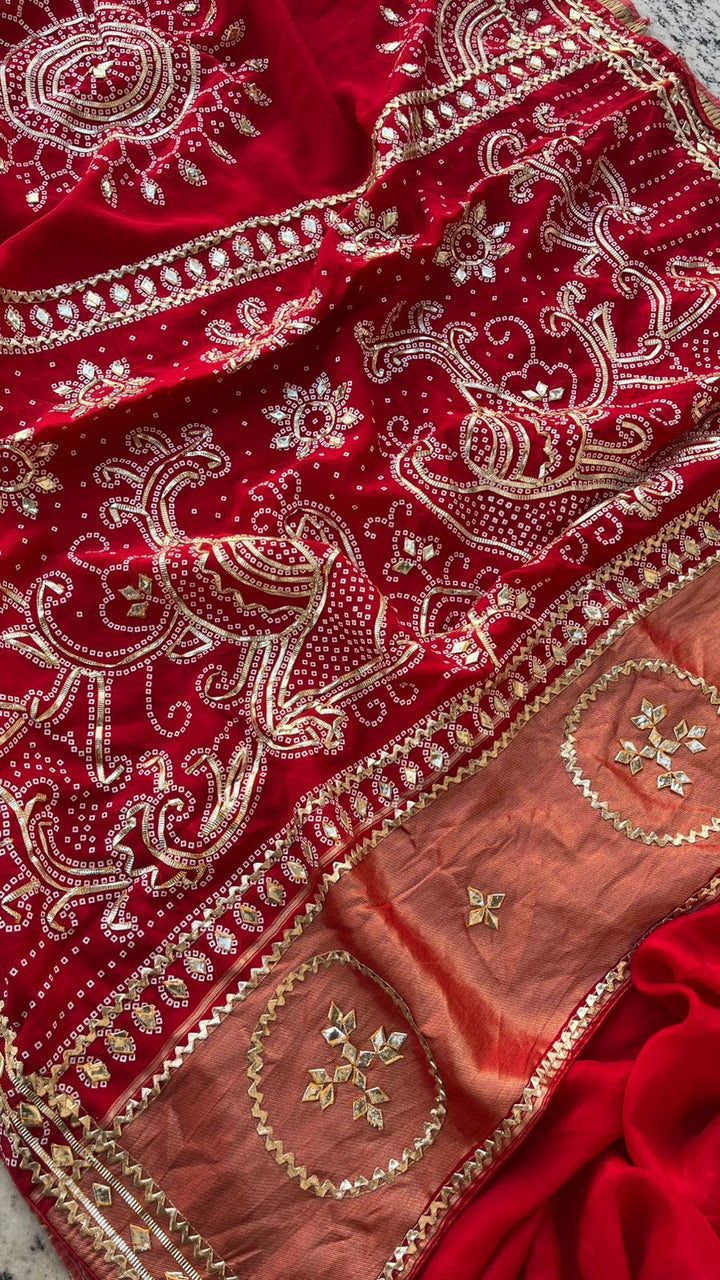 💞FESTIVE SALE Kachii Patti Bandhani Saree– Royal Red💞