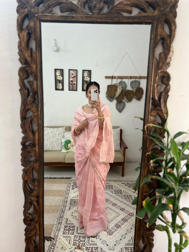 Product is Ready to be Dispatched. Order Now! 💞 Powder Pink – Elegance in Organza 💞Soft, delicate, and dreamy—this saree is a pastel-perfect pick for intimate celebrations and graceful gatherings. 🌟...