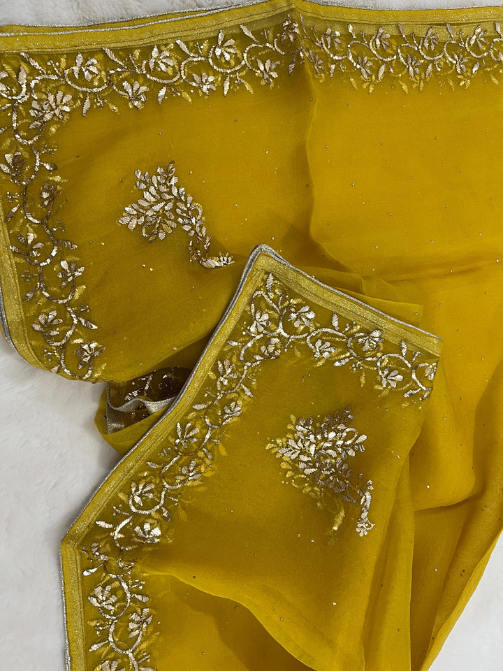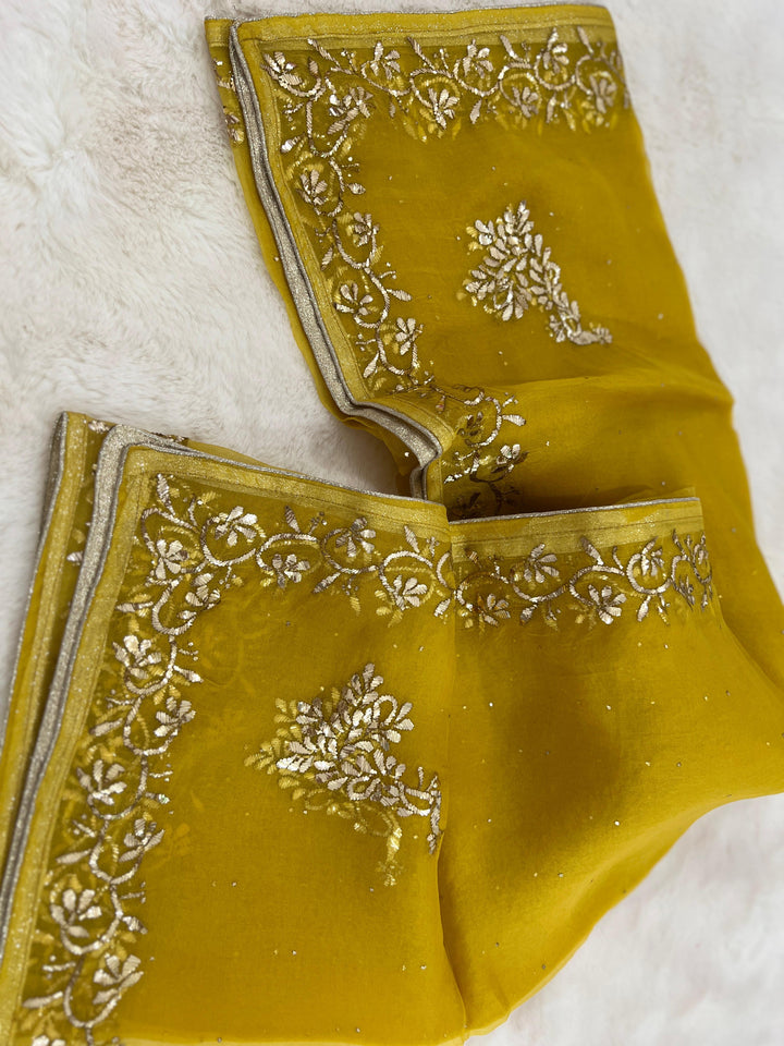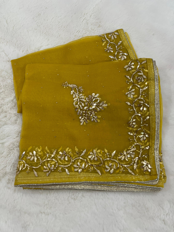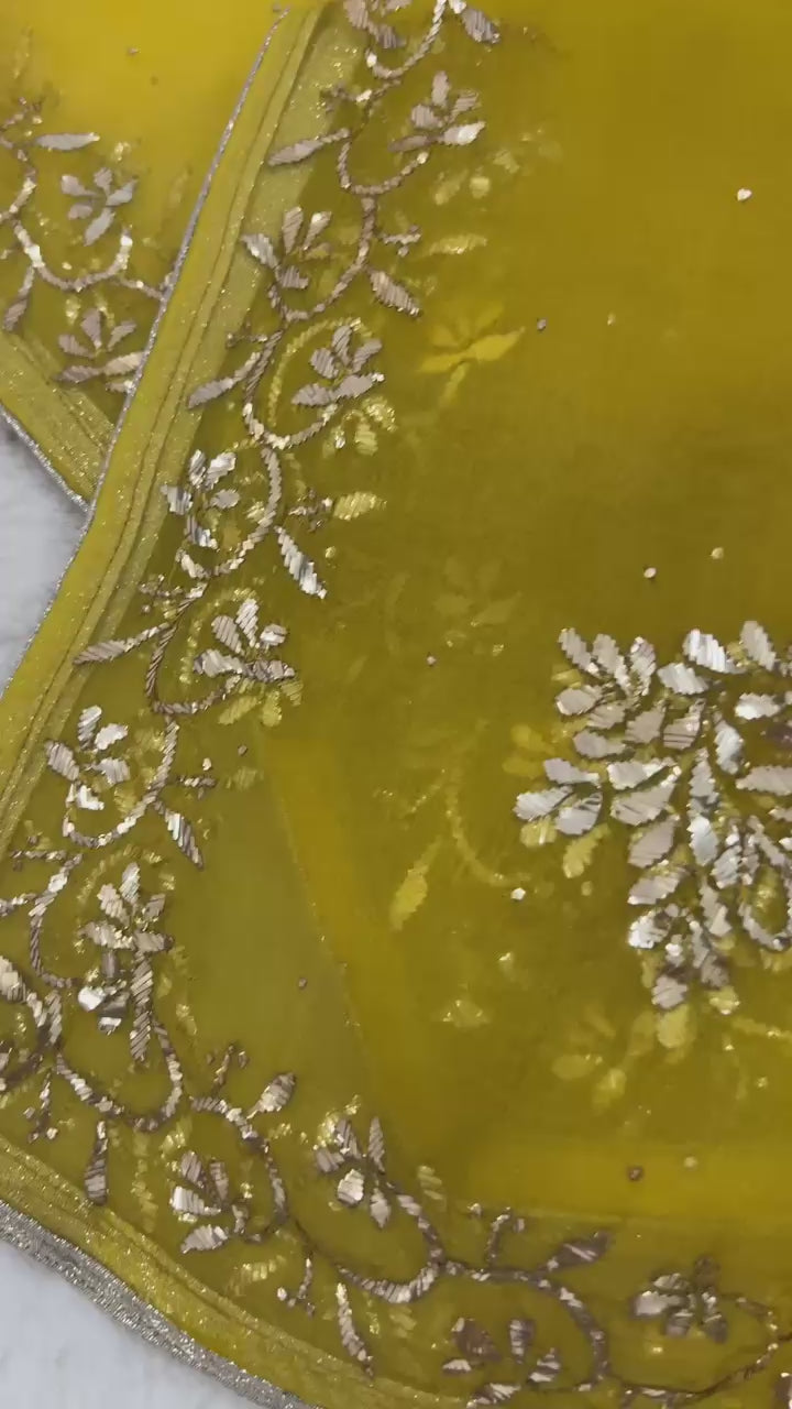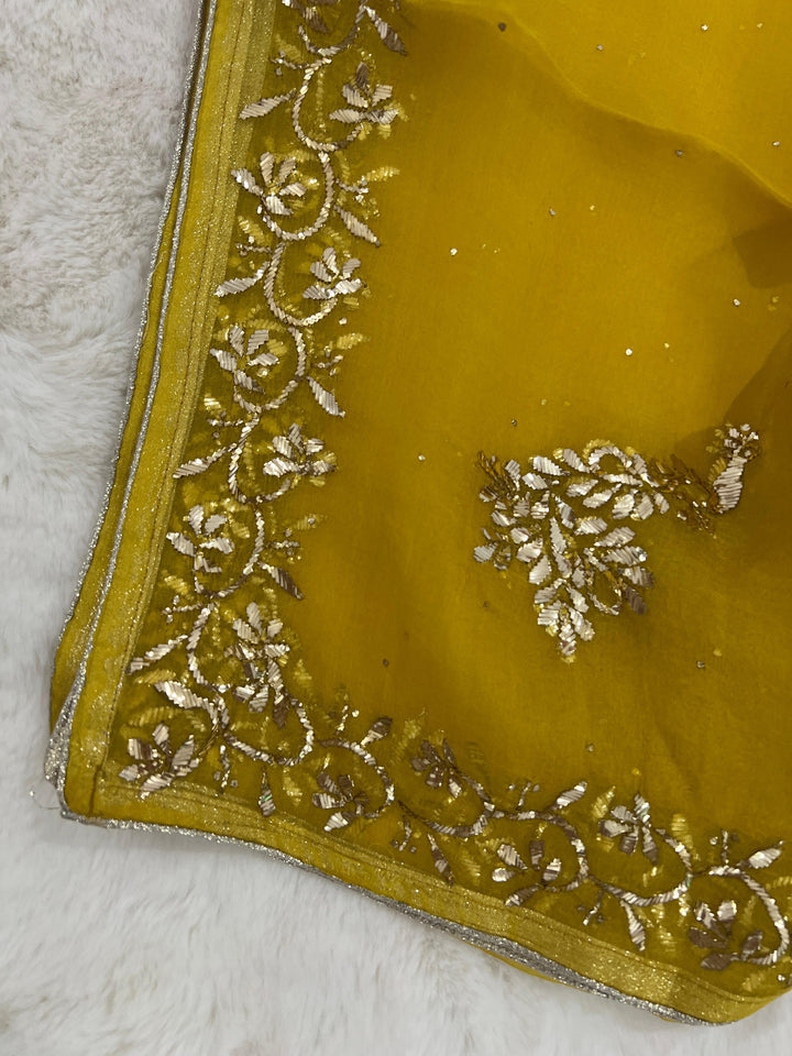 π«π Golden Yellow Mukaish Dupatta ππ« A vision of grace and radiance! β¨ Crafted in Pure Organza Silk, this dupatta is adorned with intricate Mukaish handwork all over, featuring four...