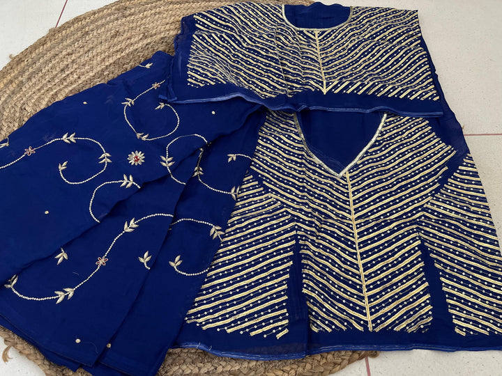 A celestial drape in midnight hues, adorned with intricate craftsmanship—perfect for evening elegance and festive charm.