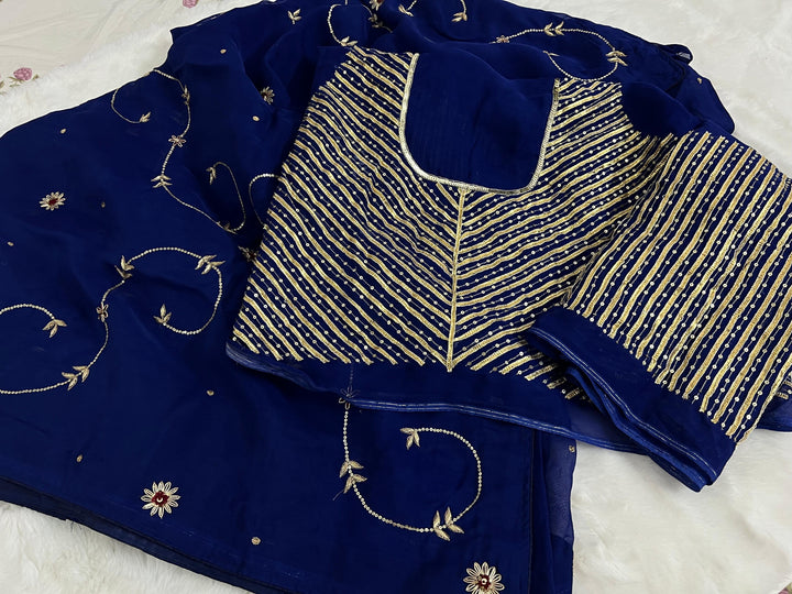 🌟 Fabric: Pure Georgette Organza – soft, sheer, and gracefully flowy