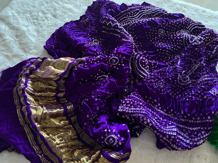 Bandhej Dupatta with Zari Pallu - Deep Purple