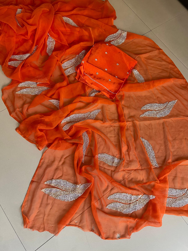 👚 Blouse: Crepe blouse with light handwork on sleeves – included with saree