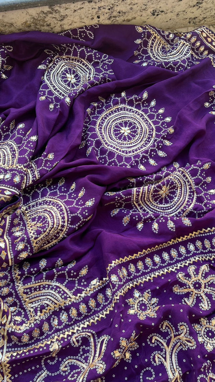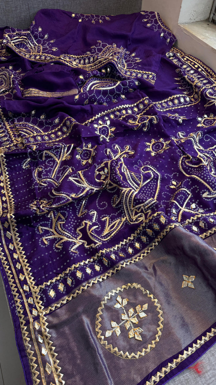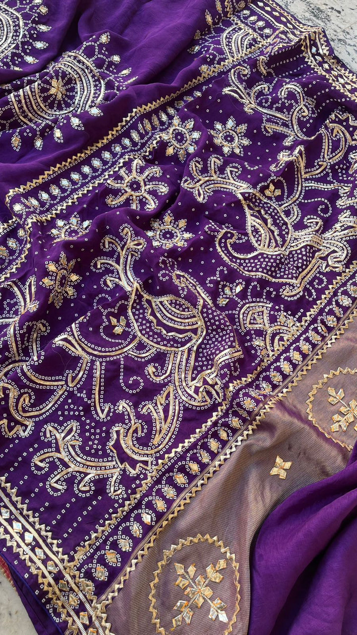 💞 FESTIVE SALE Kachii Patti Bandhani Saree – Purple Perfection💞
