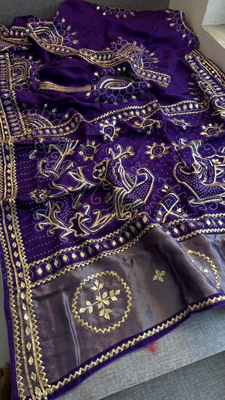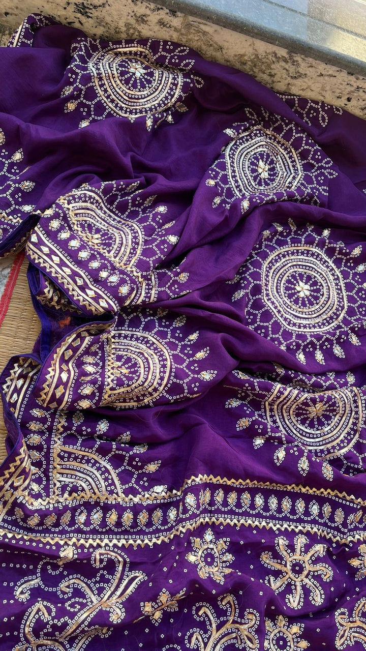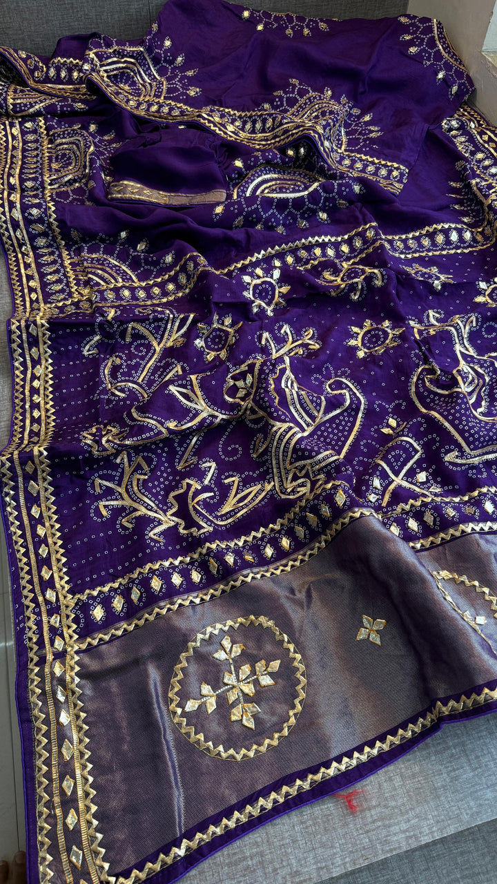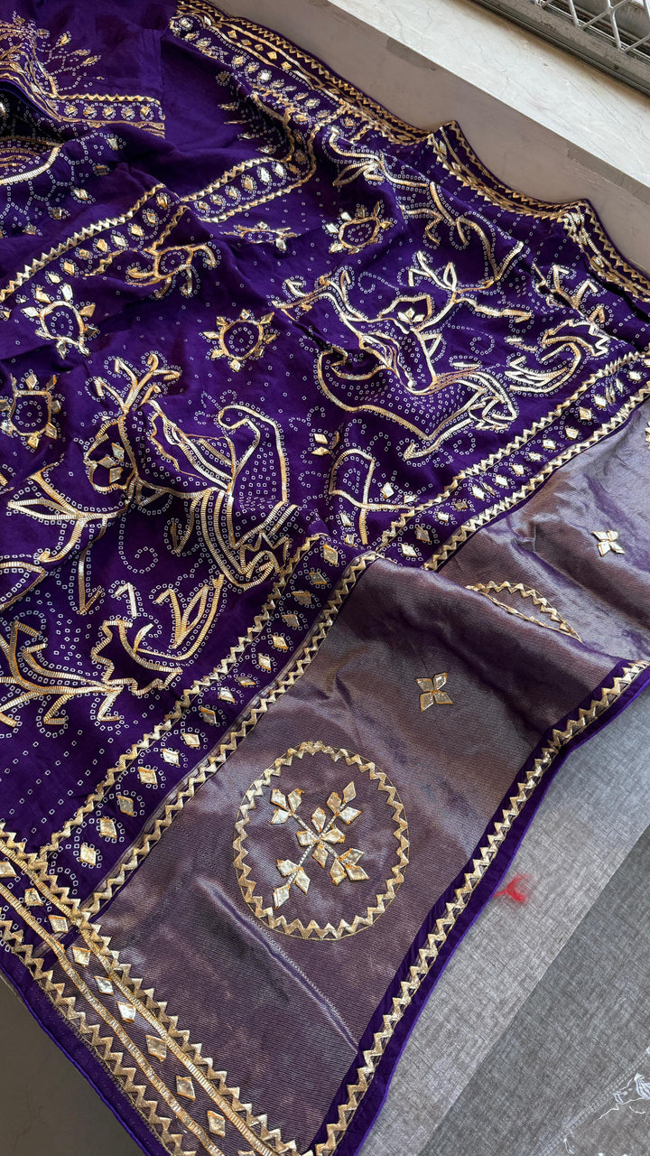 💞 FESTIVE SALE Kachii Patti Bandhani Saree – Purple Perfection💞
