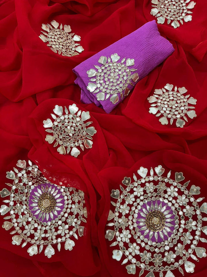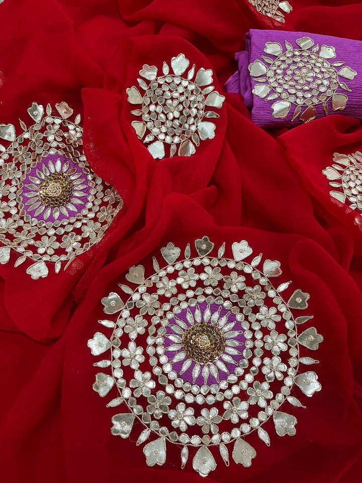 Pure Chiffon Saree With Gotapatti Handwork - Red