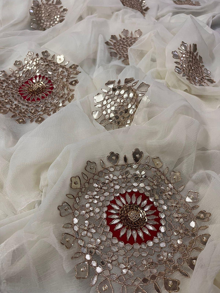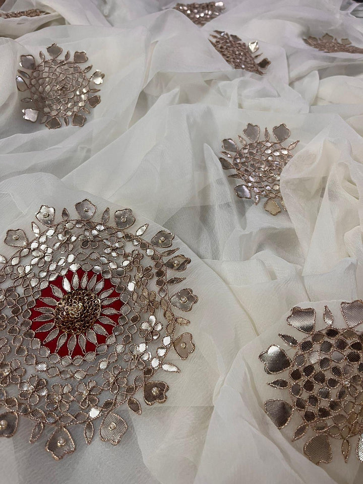 Pure Chiffon Saree With Gotapatti Handwork - White