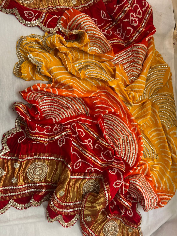Bandhej Piliya - Pure Gajji Silk Wifi Pattern Handwoven Rai Bandhej With Gotapatti