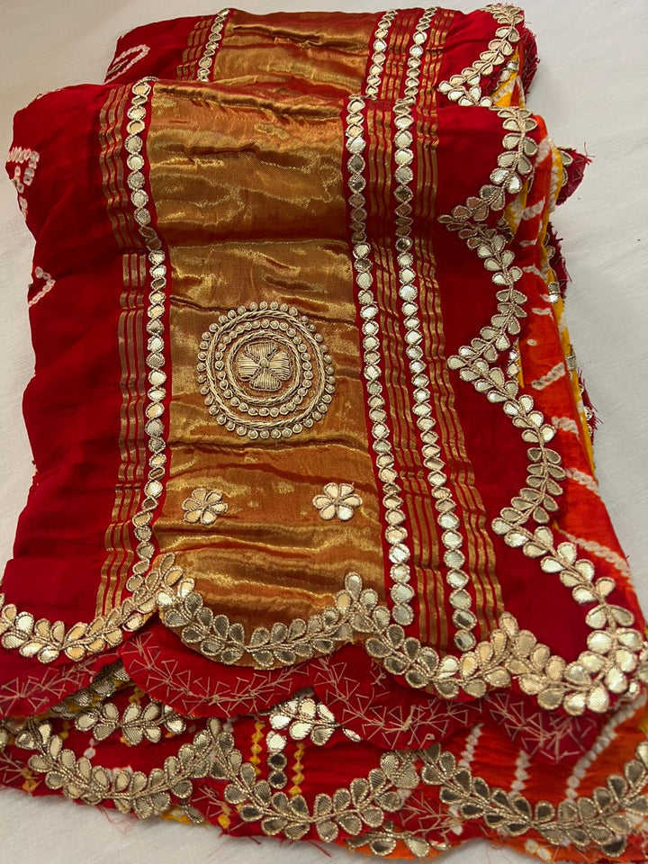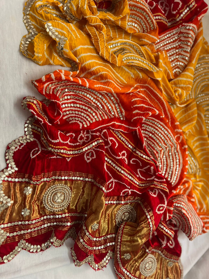 Fabric : Pure Gajji Silk Wifi Pattern Handwoven Rai Bandhej Dupatta