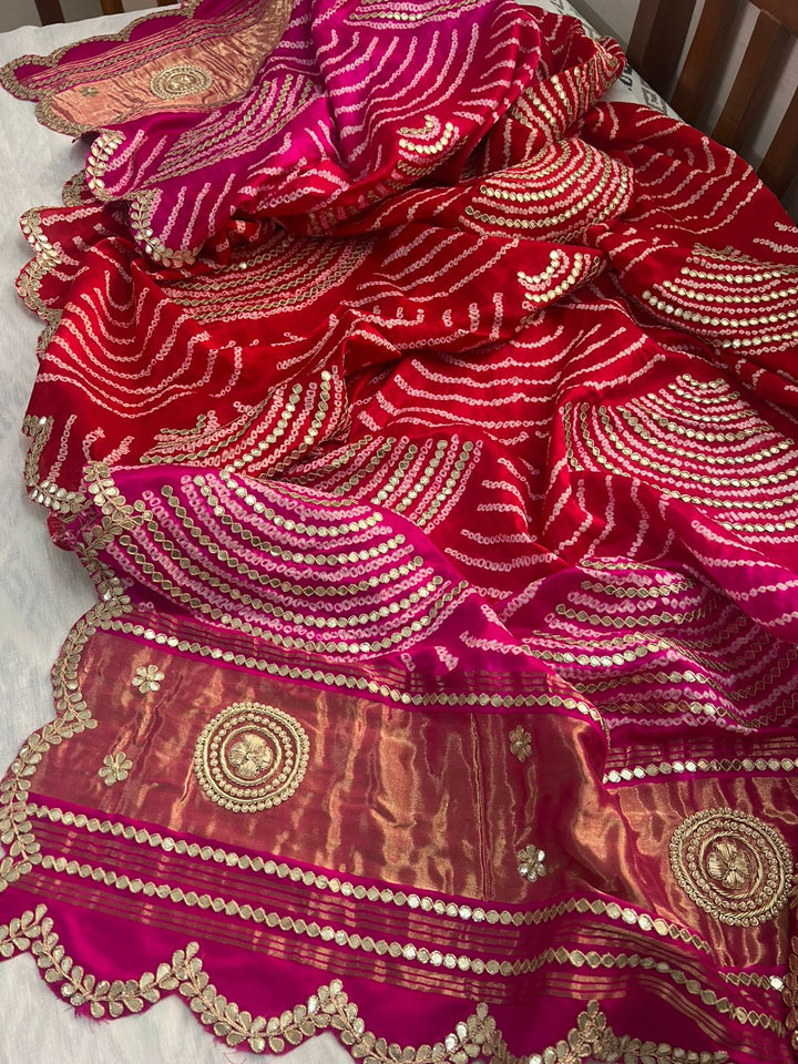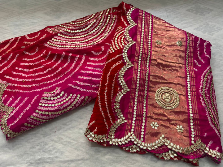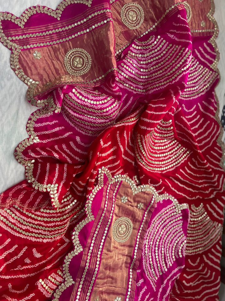 Pure Gajji Silk Wifi Pattern Handwoven Rai Bandhej Dupatta With Gotapatti - Pink