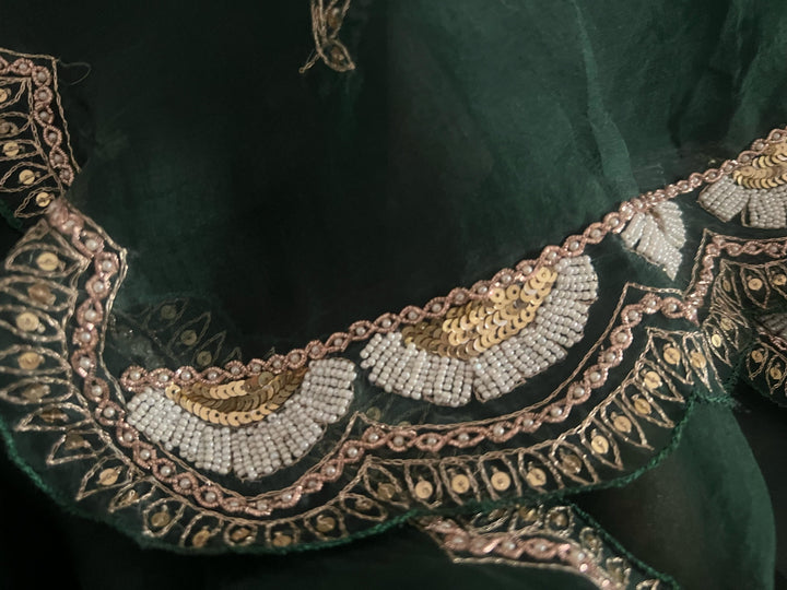 This exquisite Pure Organza Silk Saree is a perfect blend of elegance and tradition. Crafted with the finest organza silk, it features intricate Aari, Moti, and Sequins Handwork that adds a touch of luxury to your look. The delicate hand embroidery enhances the beauty of the saree, making it an ideal choice for festive occasions, weddings, and celebrations.