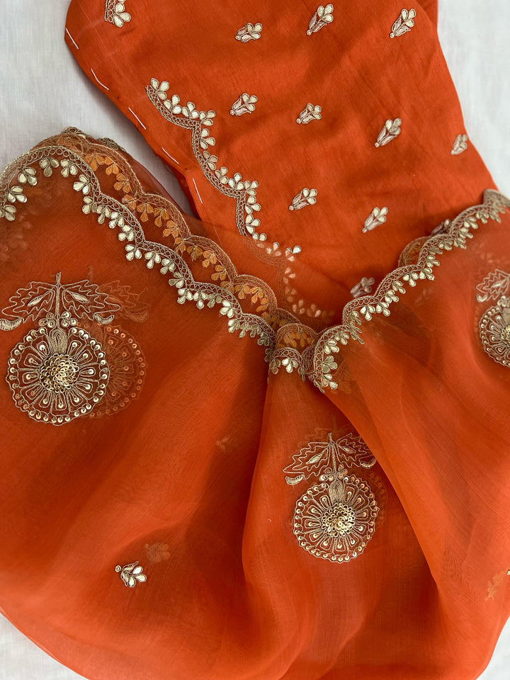 - Fabric: Pure Organza Silk Saree, Pure Chanderi Silk Blouse