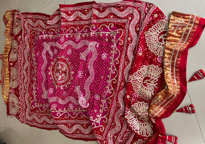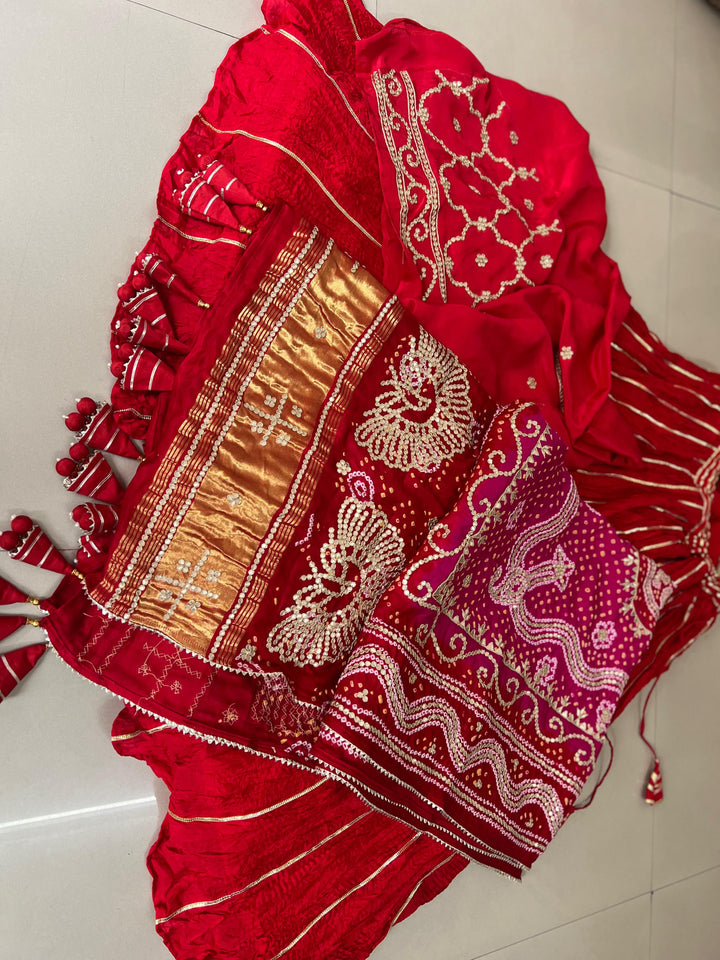 This luxurious RED RANI Bandhani Dupatta is crafted from pure gajji silk, offering a soft yet regal feel. It features intricate handmade rai bandhej patterns, beautifully complemented by delicate gotapatti and dori handwork that add an extra layer of elegance and detail. Perfect for Indian weddings, festivals, and other special occasions, this dupatta effortlessly enhances any ensemble with its vibrant colors and exquisite craftsmanship. Available in multiple stunning colors, it allows you to choose the perfect hue to match your style and celebration. Handcrafted with love and care, it is an essential accessory for those looking to make a bold and sophisticated statement on their special day.