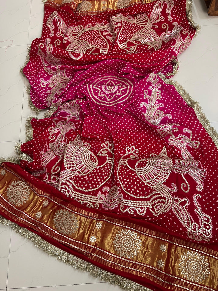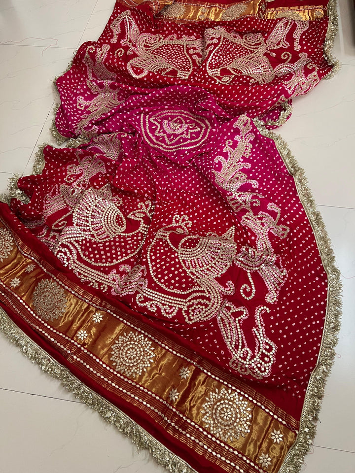 Craft : Rai Bandhej with Gotapatti & Zardozi Handwork with Tissue Zari Pallu