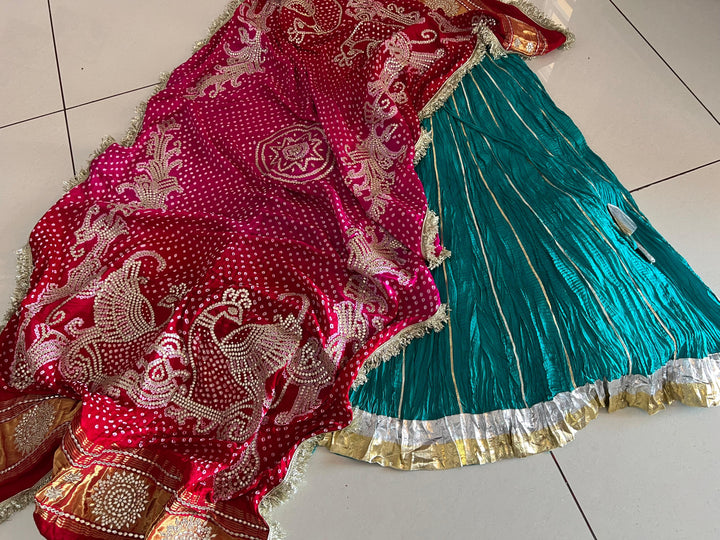 Item sold out currently. Pre-booking available up to 3-4 weeks in advance. Indulge in the richness of tradition with this Red Rani Bandhani Dupatta, crafted from luxurious pure gajji silk. The dupatta...
