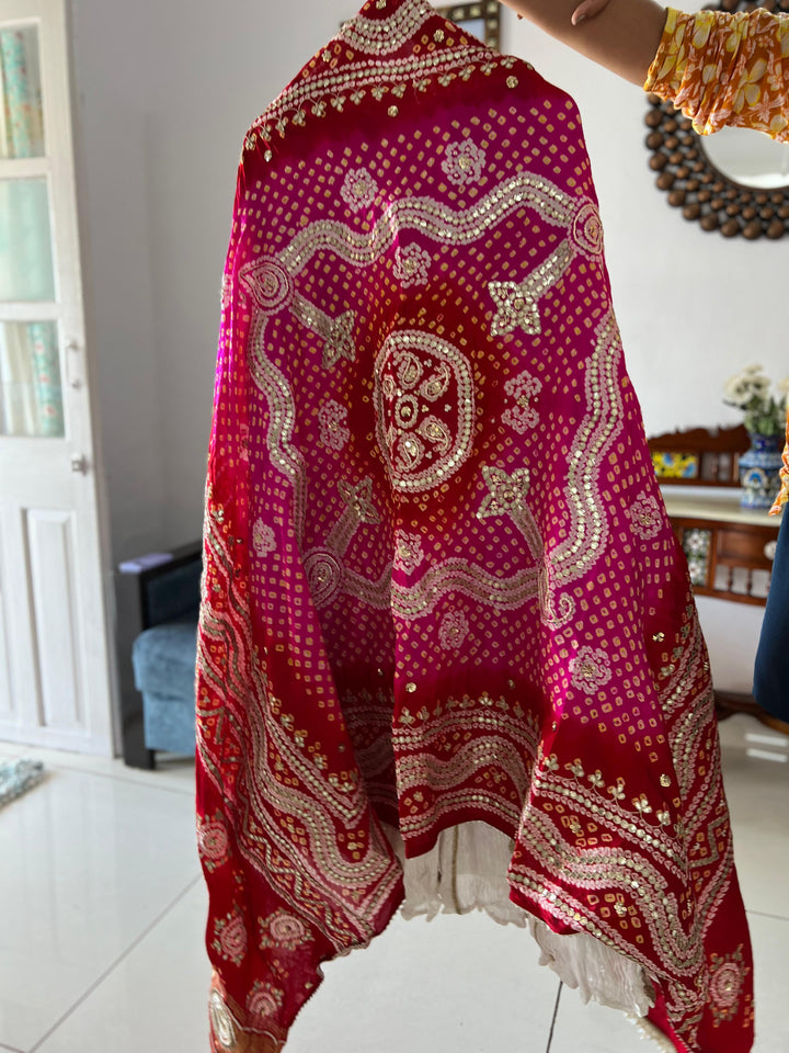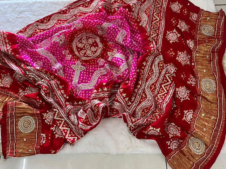 Fabric : Pure Gajji Silk Red Rani Rai Bandhani with Gotapatti