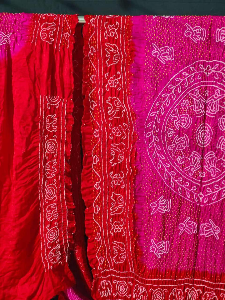 Red Rani Rai Bandhej Saree In Pure Gajji Silk With Zari Pallu Elevate your style with Rai Bandhej Saree in Pure Gajji Silk with Zari Pallu. Indulge in the luxurious...