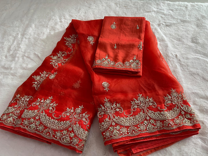 Fabric : Rich Orange-colored pure Organza Silk