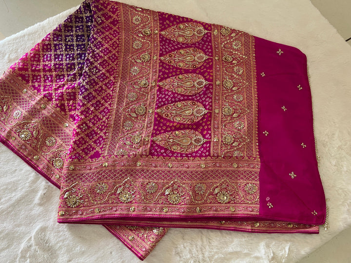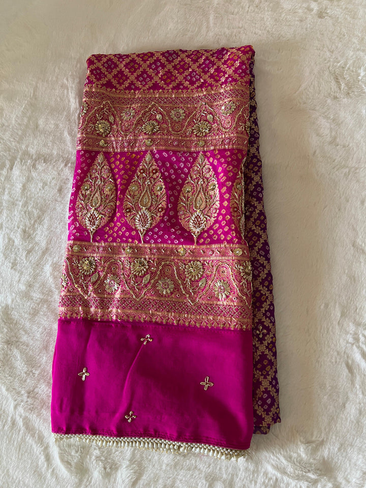 Celebrate the grandeur of tradition with our Shagan Odhna, a timeless masterpiece designed to make every occasion special. Crafted from pure georgette fabric, this Neemzari Dupatta is a stunning blend of elegance and intricate craftsmanship.