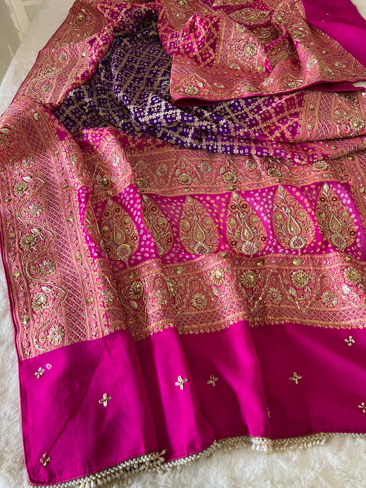 - Fabric: Traditional Pure Georgette, known for its lightweight and graceful drape, ensuring comfort without compromising on luxury.